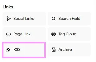 Click Add Block where you want to add your RSS feed, and under links, choose RSS