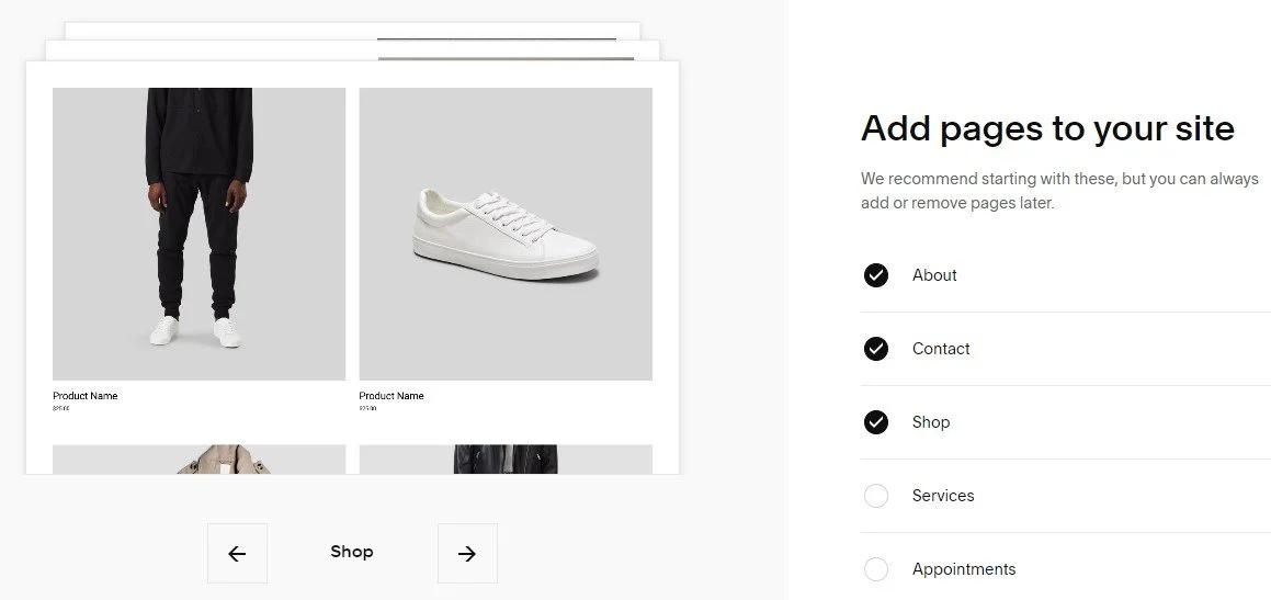 Choose which pages you want to add to your site