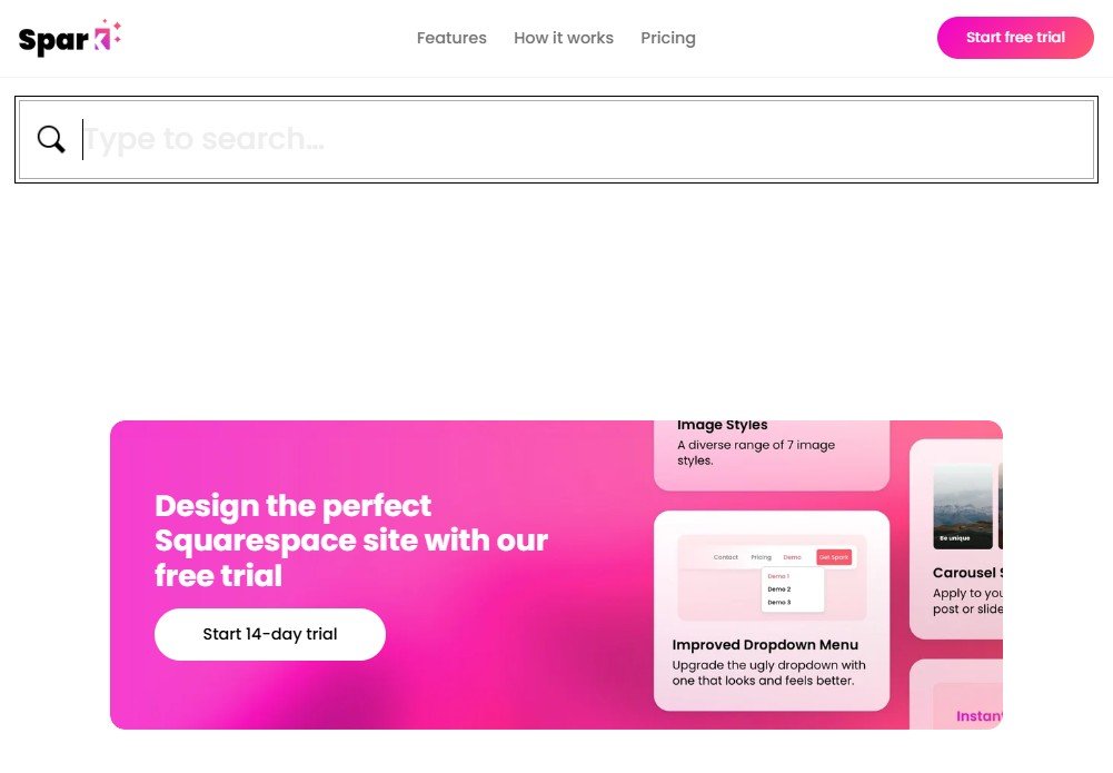 If you want to add a search bar to your Squarespace site’s header, you can’t do this natively in Squarespace. However, you can add one with Spark Plugin’s Squarespace search plugin!