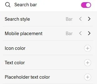 Mobile placement: You can also choose how your search bar looks on mobile devices. Choose from a small bar, a full bar, or an icon.