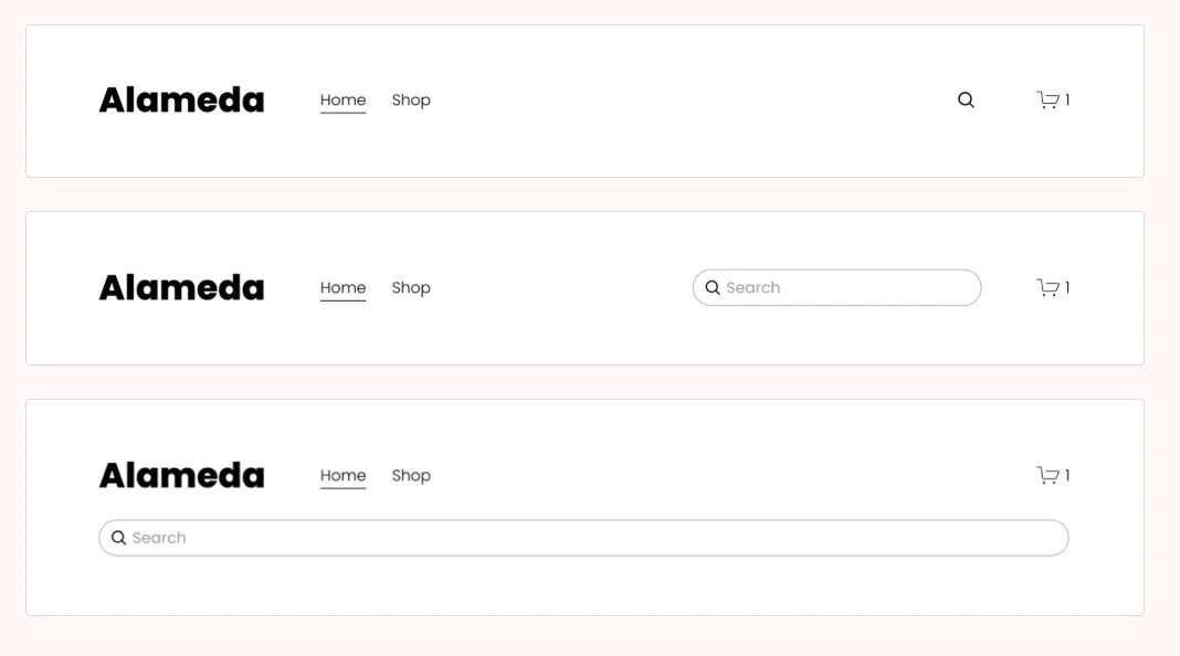 Search style: Choose from a small bar, a bar which takes up the entire length of the header, or a magnifying glass icon that you can click on to access search