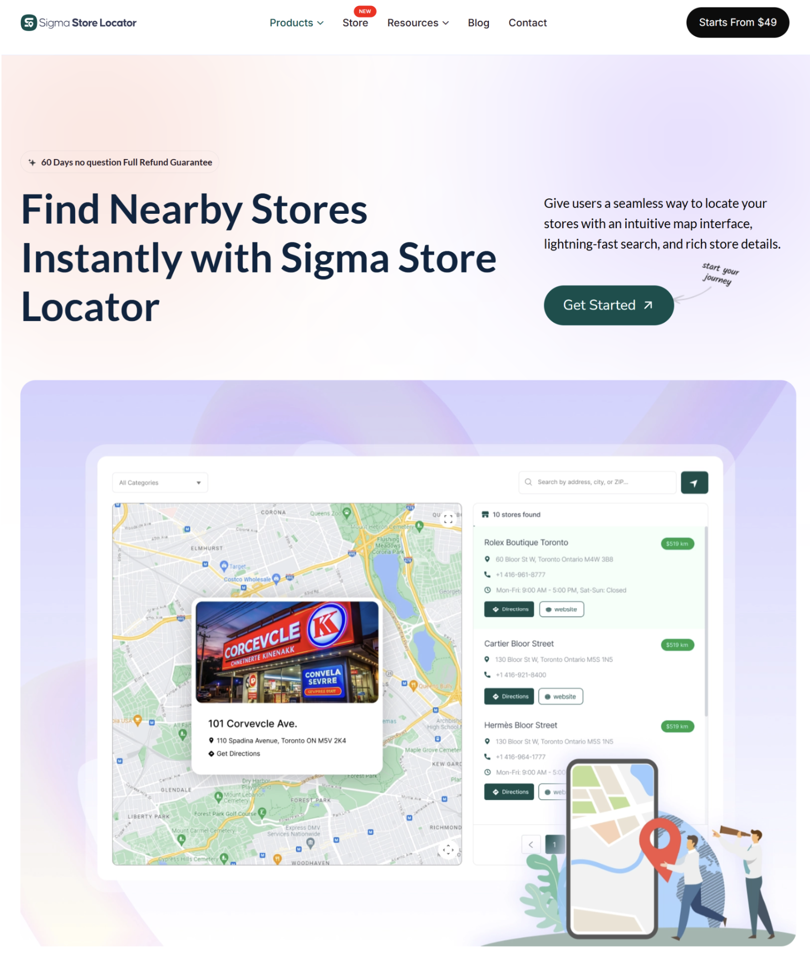 Sigma Store Locator is a feature-rich store locator solution that can be embedded on WordPress websites using map embeds. It’s well-suited for businesses with multiple locations that want more control over how stores are displayed and searched.