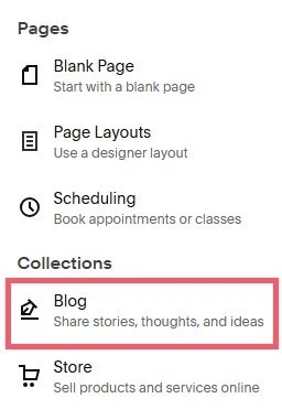 One of the easiest ways to build a Squarespace wiki is by creating a new blog collection. You can do this by going to Pages, clicking the plus sign (+) and choosing Blog.